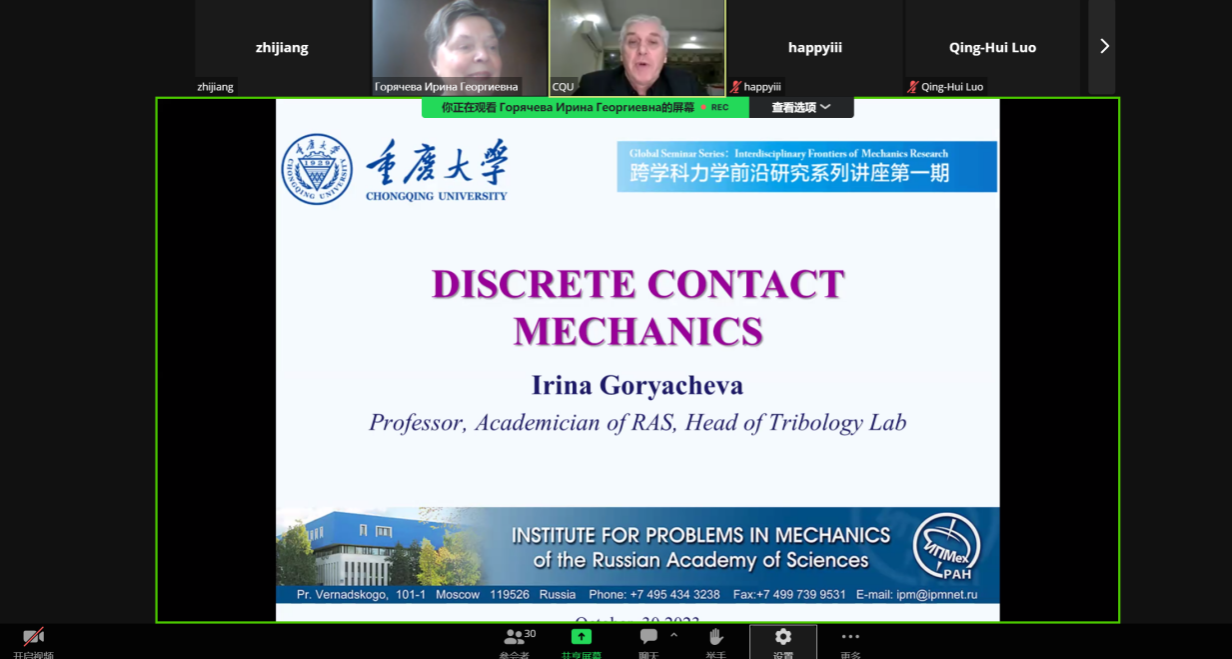详情 2023年10月30日19:00,丝袜色情片 “跨学科力学前沿研究”全球系列讲座第1期在线召开。讲座邀请俄罗斯科学院院士Irina Goryacheva教授开展了主题为“Discrete Contact Mechanics”的学术讲座。 学院Feodor M. Borodich教授介绍了本次讲座的安排及嘉宾背景。Irina Goryacheva教授是俄罗斯科学院(RAS)资深院士,接触力学和摩擦学领域的世界顶级专家、俄罗斯国家理论与应用力学委员会主席、俄罗斯摩擦学委员会主...