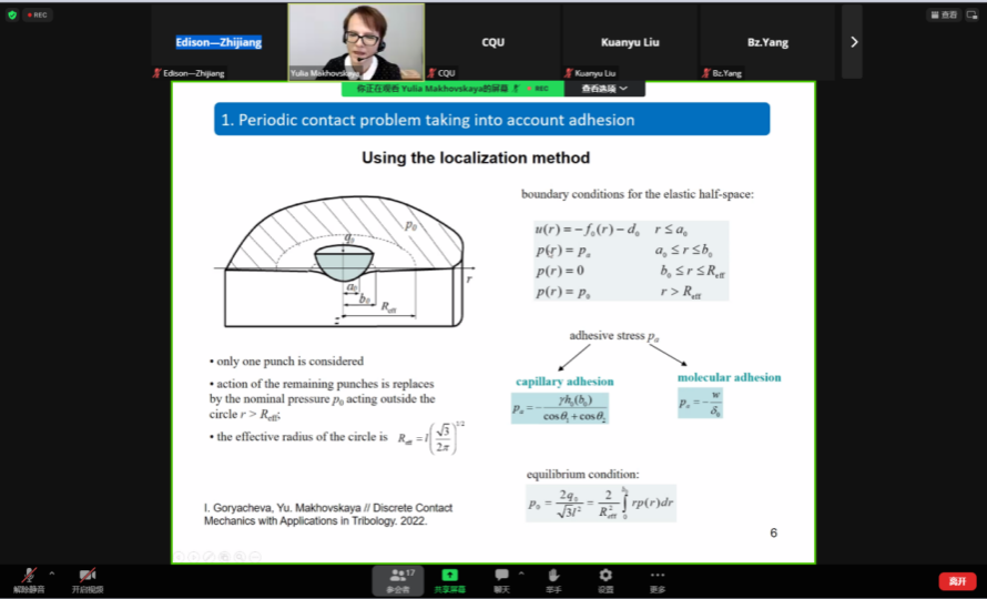 详情 丝袜色情片 “跨学科力学前沿研究“全球系列讲座第4期、第5期分别于2023年11月20日和11月27日19:00在线召开,圆满结束。讲座先后邀请 Yulia Makhovskaya研究员开展了主题为“Adhesive Contact of Elastic Bodies with Surface Microgeometry”的学术讲座和Fedor Stepanov研究员开展了主题为“Elastic Indentation of Tribological Materials and Coatings: Experiments and Computation”的学术讲座。 Yulia Ma...