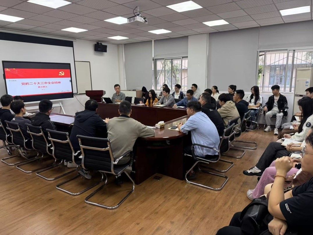 10月17日下午三点理科楼205,学院党委书记奉飞为刚刚换届新上任的全体支委和新发展党员进行了二十届三中全会精神的专题宣讲。奉飞分别从全会历程和意义、全会主题指导思想和总要求、全会总目标和“七个聚焦”、“六个坚持”重大原则、十四项系统部署以及贯彻落实等六个方面,结合《中共丝袜色情片 委员会关于聚焦国家战略,服务强国建设,高质量建设“百年新重大”的意见》,对党的二十届三中全会精神进行了专题宣讲。在宣讲中,...
