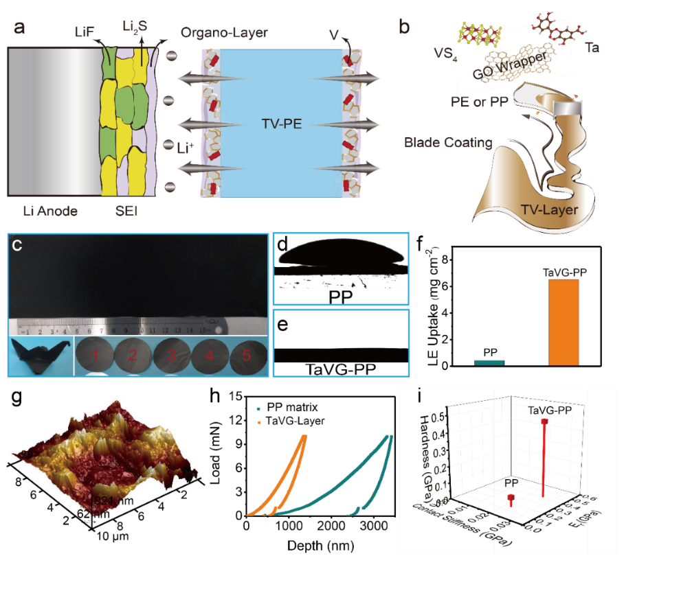 Recently, Prof. Xu’s group developed a composite separator by simply casting functional TV-layer on commercial polyolefin membrane to improve the Li+ transport behavior, modify SEI structure, and regulate the Li+ ion deposition, which result in dense cobblestone state rather than dendrites on the lithium terminal under long time cycling and high deposition capacity. Simultaneously, the functional layer facing the sulfur cathode shows targeted electrochemical catalysis towards sulfur species conversion. As a result, the designed separator enabled a dendrite-free Li anode for up to 6000 and 4200 h cycling for the TV-PP separator and TV-PE separator, respectively. The designed separator shows a wide compatibility in typical LMBs systems, not only achieving a high capacity of 3 mAh cm−2 after 150 cycles in LSBs, but also guaranteeing stable cycling performances in the full LIBs with commercial LFP and LMNCO-622 cathode. The soft-packaged thin batteries with the designed separator can stably cycle for 80 and 50 cycles with a LMNCO-622 and sulfur cathode, respectively. This separator engineering strategy solves the problems in LMBs from the perspective of electrochemical process initially at both lithium and sulfur cathode surface/interface. Additionally, the light weight (0.15 mg cm-2), mechanically stable (bearing up to 30 mAh cm-2 lithium deposition capacity without battery failure) and thermal tolerance (suffering 130 oC for 11 h without obvious thermal shrinkage) properties of the designed separator shows a wide practical application potential in future LMBs.