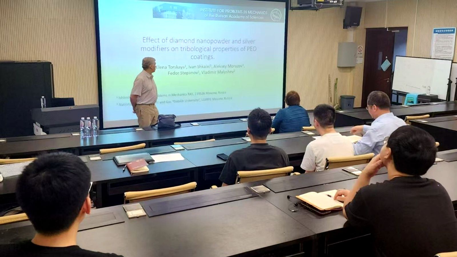 Feodor Borodich教授首先对Elena Torskaya教授表示热烈欢迎,并对来宾作了简要介绍。Elena Torskaya教授现任俄罗斯科学院Ishlinsky研究所首席研究员。2016年,成为俄罗斯科学院教授。她著有两部专著,在学术期刊上发表了70多篇论文。在过去的五年里,她是接触力学和摩擦学领域国际科学项目负责人。