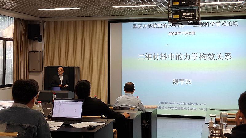 ,分别于当日下午14:30和16:00在A区理科楼010室出席由工程学部主办的工程科学前沿讲坛,并分别作题为“空间碎片云、陨石坑撞击、小行星防御等超高速碰撞的研究新进展”和“二维碳材料的力学构效关系”的学术报告。