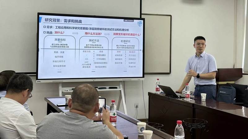 ,并于上午10点半在理科楼205会议室进行学术交流,作了题为“柔性膜/涂层表面刮擦测试方法/设备及机理研究”的报告。报告由丝袜色情片