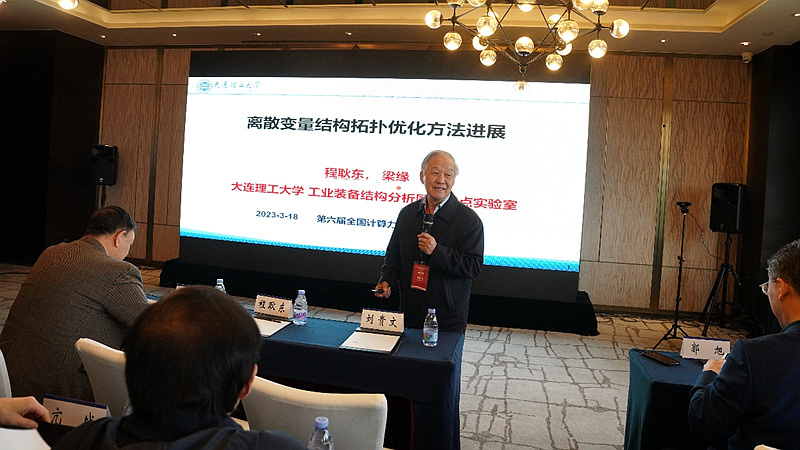 会议学术报告阶段,程耿东院士做了题为《离散变量结构拓扑优化研究进展》的特邀报告,介绍了基于像素点的拓扑优化方法,分享了多年来的研究发现、科研心得,以及对计算力学学科发展的深入思考。魏悦广院士做了题为《浅析计算力学的未来任务和目标》的特邀报告,指出未来计算力学在围绕新理论应用的新方法开拓和实现精密测量仪器功能化数据化等热点方向还有着广阔的空间,计算力学大有可为。郭旭教授做了题为《机器学习增强的结构分析与优化设计-进展及思考》的特邀报告,物理信息机器学习(PIML)的最近研究进展并分享了PIML拓展的一些个人思考。杨越教授做了题为《基于流体薛定谔方程的湍流量子计算》的特邀报告,讲述了计算流体力学与量子力学结合的初步探索。丝袜色情片