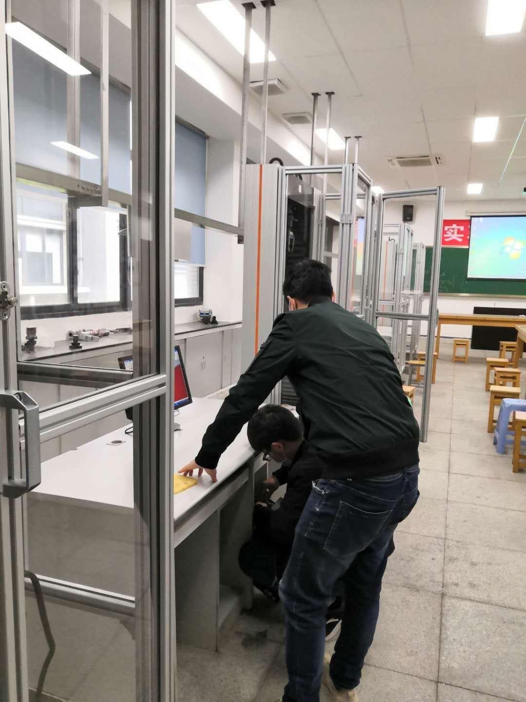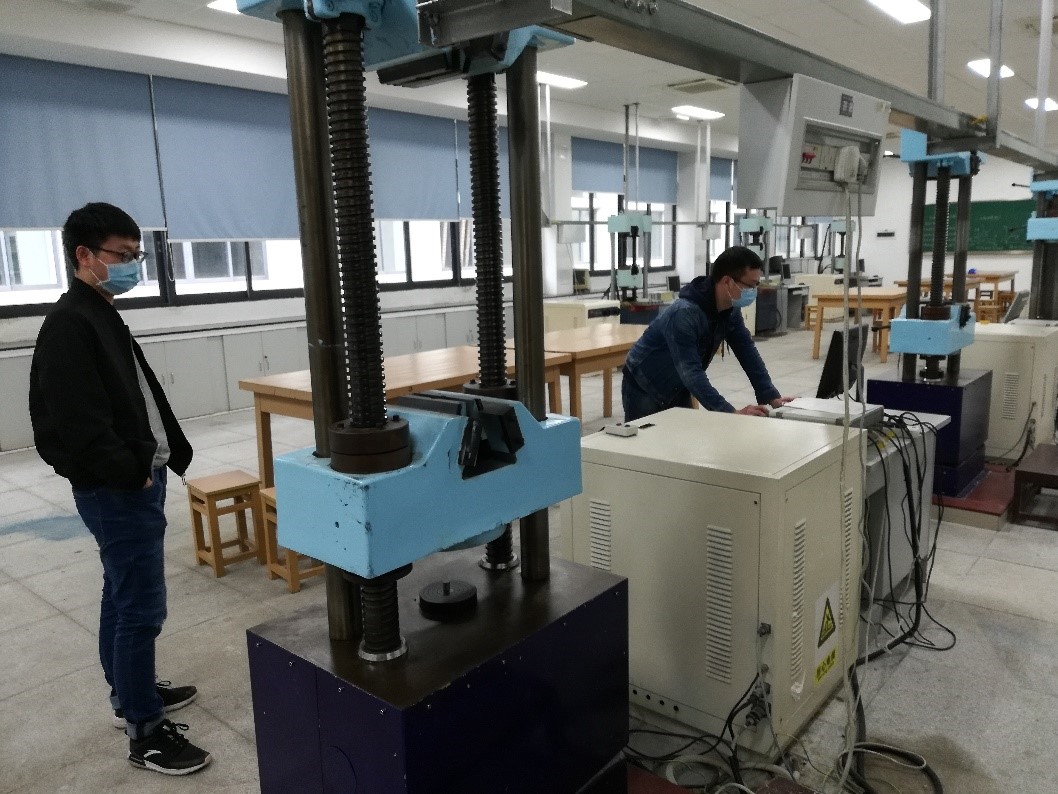 在虎溪校区重庆市力学实验教学示范中心,检查组对基础力学实验教学设备逐一开机检查,发现问题及时调试,保证开课后能正常使用。同时针对学生近期无法返校开展实验课程的情况,检查组积极讨论,初步制定了包括线上理论教学、现场实验过程讲解录制、学生线上完成实验报告等预案。