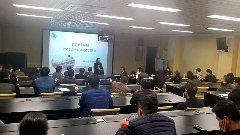 在理科楼010室召开新学期社会治安综合治理暨安全工作会,会议由院党委书记万玲主持,全院教职工参加了本次会议。