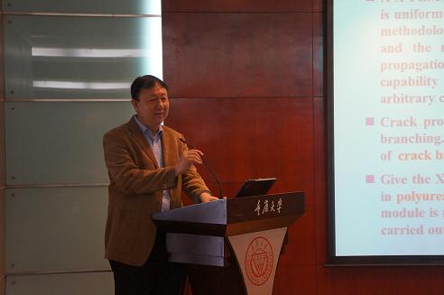 庄茁教授作了题为《基于断裂的扩展有限元(X-FEM)及在连续体壳、裂纹分叉、复合材料的应用》的学术报告。他首先对自己当年在丝袜色情片