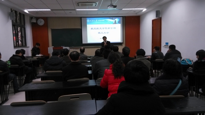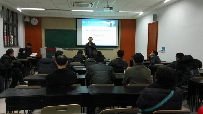 严波副院长主要围绕教学方面作了发言。严院长介绍了寒假期间学院领导班子走访航空航天领域相关企业、科研院所调研及签署合作协议的情况,指出了西南地区航空航天专业人才匮乏的现状,建议学院教师,特别是青年教师有意识调整研究方向,重点放在航空航天领域。