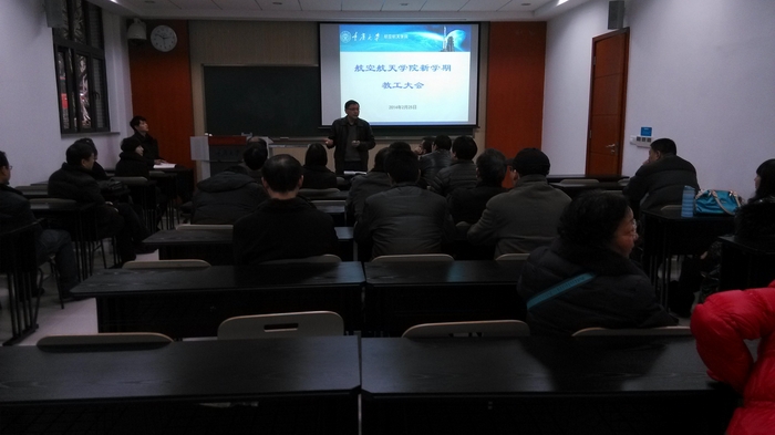 刘占芳副院长紧接着介绍了学院现有科研情况,并鼓励老师们积极申请2014年的国家自然科学基金。针对学院学科发展提出了“航空航天复合材料”、“航空发动机”、“航空机电”、“空气动力学”四个初步方向。