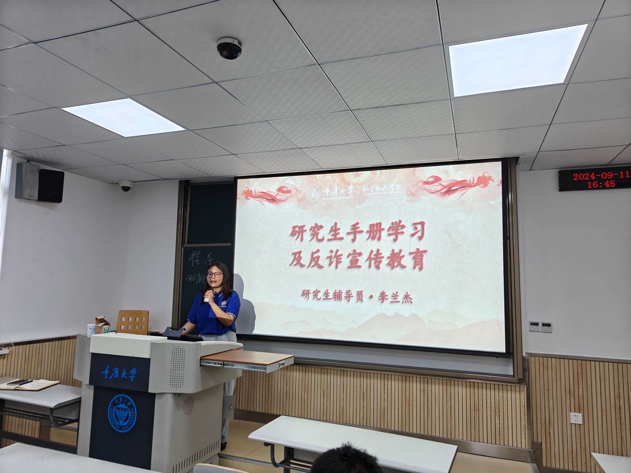 于9月11日下午3:00在研究生院509举办2024级研究生年级会暨新生入学教育大会,研究生辅导员李兰杰主持会议,学院党委副书记纪委书记程乐、团委书记陈勇凡、组织员伍丹、科研秘书李蔚、实验中心安全员尹瑞森、学院研分团委、研分会主要干部参加会议。