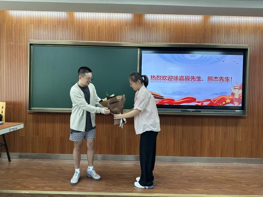 随后,在热烈的掌声中,徐嘉辰先生也即席作了发言。他从自身发展经历、目前企业研发方向和特色以及此次捐赠的初衷,和同学们进行了交流。徐先生表示,教育是国家的未来,也是企业的责任,希望同学们能够深入学习专业知识,并将自己的专业知识大胆用于实践,鼓励大家发扬开拓创新精神,勇于探索,敢于突破。学院的学生代表专门为两位先生送上了鲜花。