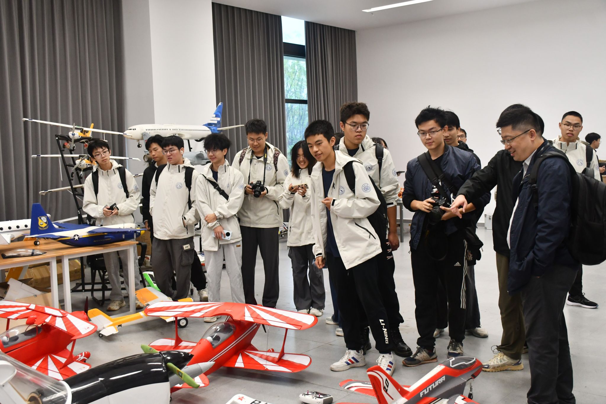 下午,中飞院航模队带领我校航模队一行乘校园巴士观光该校新建的天府校区校园,之后,一行人前往工程技术训练中心进行参观。在这里,中飞院老师详细介绍了飞机机务维修执照培训与考证的相关情况,中飞院航模协会带来精彩的室内无人机编队飞行表演,并在该校C区操场进行了航模飞行技术交流与表演。