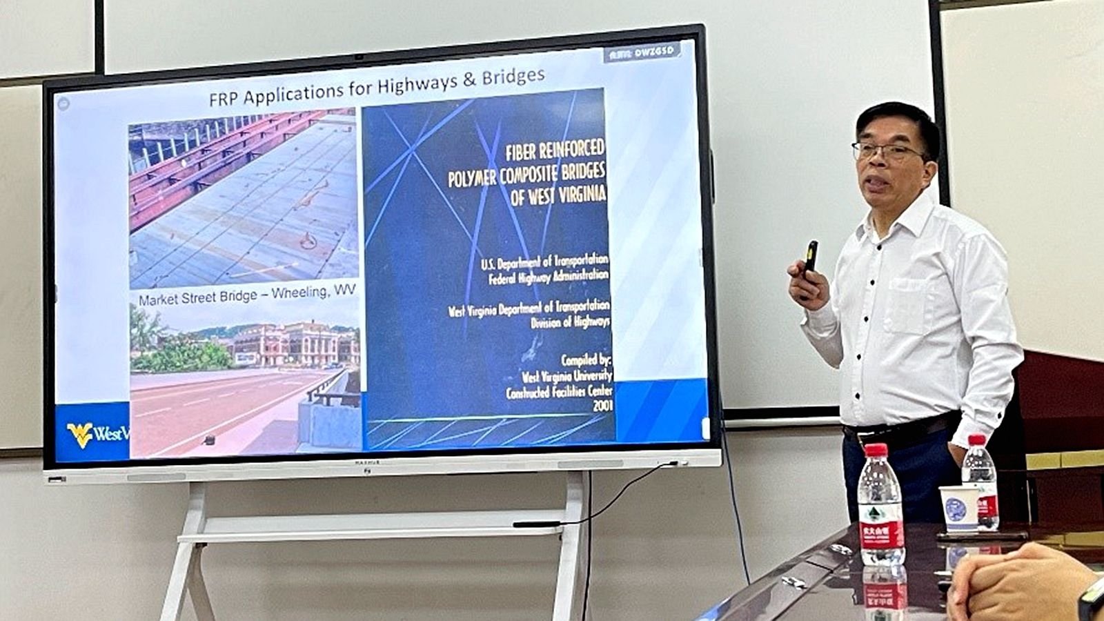 报告中,梁教授就纤维增强高分子复合材料的设计、制造以及在基础设施工程领域的创新应用方面展开讲解介绍,同时对比了中美两国在复合材料应用方面的差异。梁教授表示,中国复合材料相关领域研究虽然起步较晚,但近年来发展迅速,这其中离不开中国市场的巨大需求与广大科研工作者的贡献。