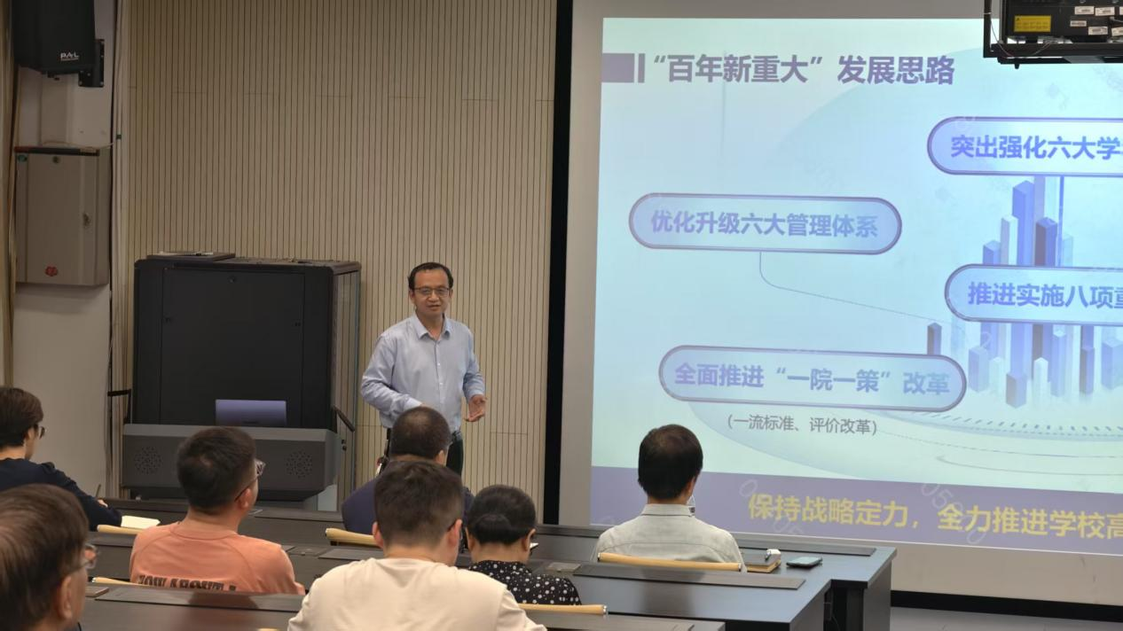 李卫国副院长(主持工作)首先传达了学校新学期干部大会精神,并结合学院学科建设关键指标和“一院一策”规划,重点从推进高质量学科建设、加快高端科研平台建设和优化人才师资引育体系三个方面作了汇报。
