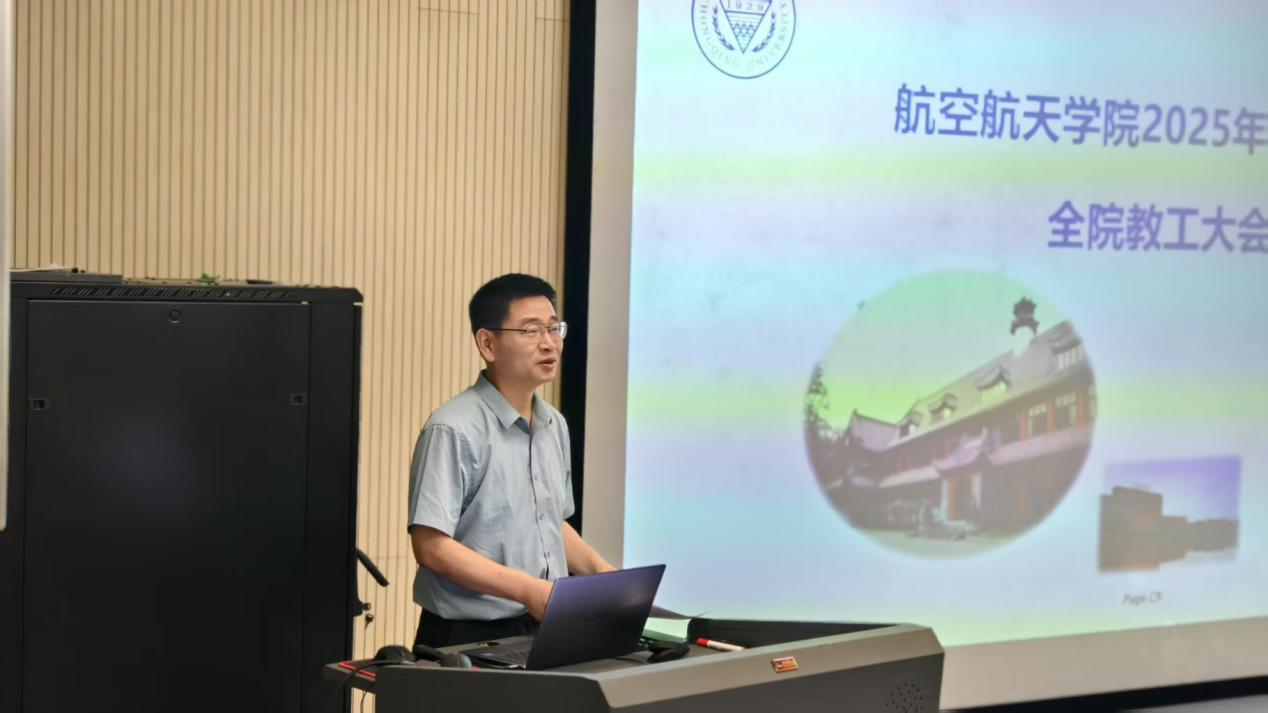 2025年4月17日下午,学院在理科楼010教室召开2025年春季全院教职工大会,学院班子成员结合学校和学院年度重点工作,分别就各自分管领域工作作了介绍和部署。大会由学院党委书记奉飞主持。