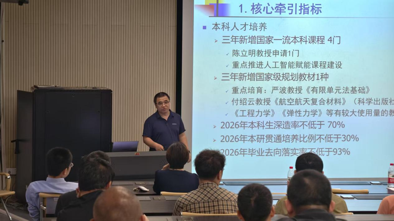 姚建尧副院长以学院本科人才培养和军工科研领域的核心指标为牵引,介绍了年度重点工作规划和具体实施方案。