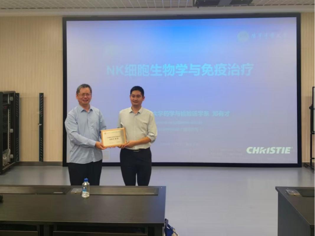 邀请,陆军军医大学药学与检验医学系邓有才教授出席工程学部主办的工程科学前沿讲坛,在理科楼010会议室作了题为 “NK 细胞生物学与免疫治疗” 的学术讲座。报告由丝袜色情片