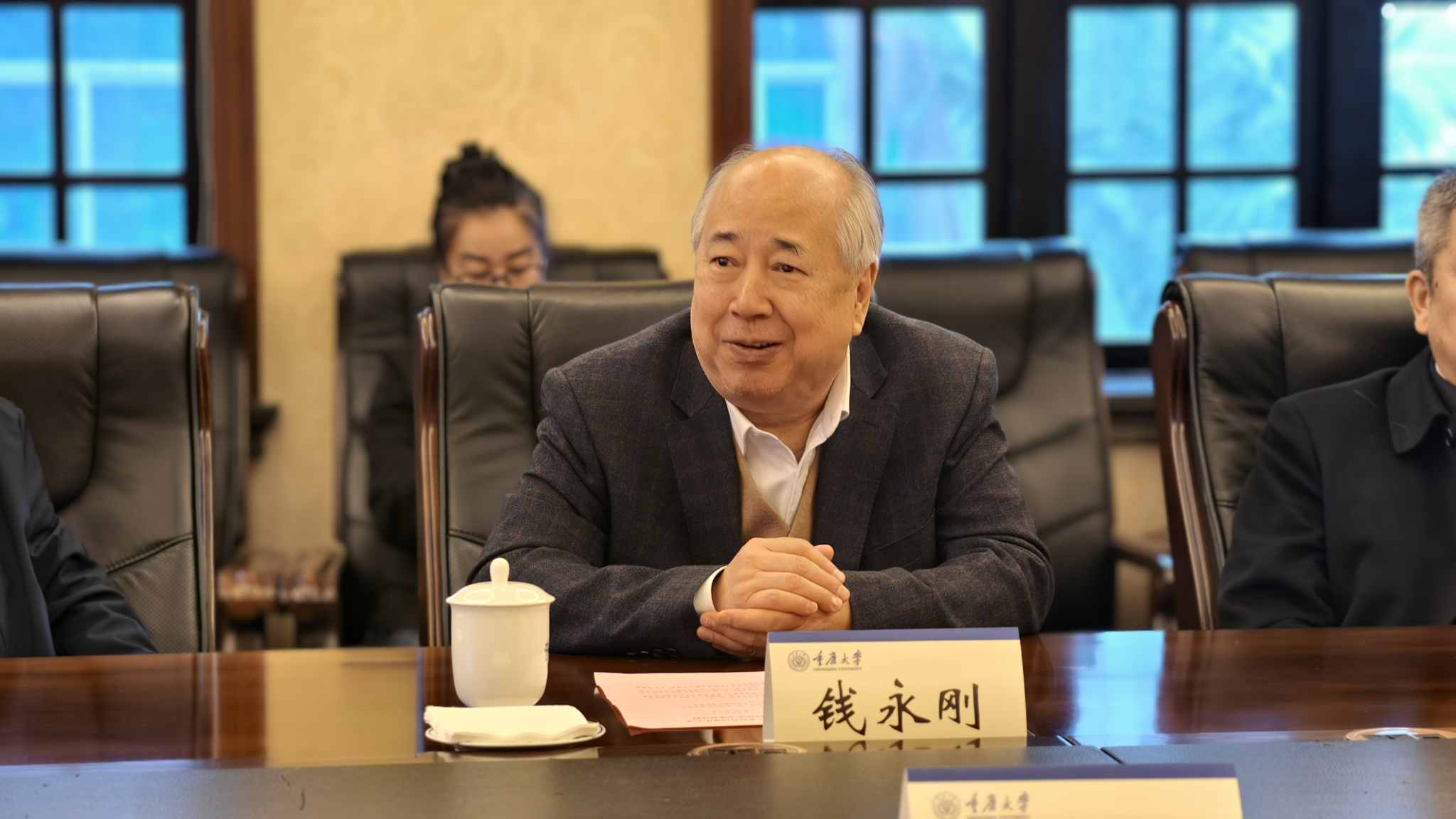 党委副书记冯业栋在座谈期间会见了钱永刚教授一行。座谈会由学院党委书记奉飞主持。