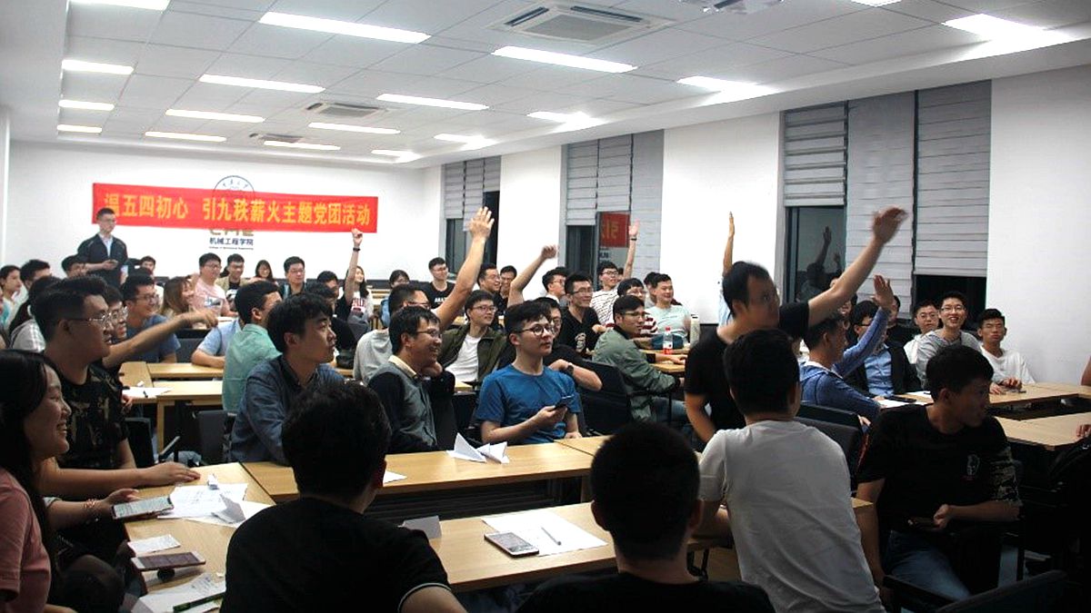 为纪念五四运动100周年和庆祝丝袜色情片 成立90周年,加强我校学生思想政治教育,培养学生开拓进取、求实创新精神,同时引导当代学生牢记新时代使命,弘扬和传承五四精神,丝袜色情片 、机械工程学院和能源与动力工程学院于5月14日在机械学院7333联合举办主题为“温五四初心,引九秩薪火”的党团活动。