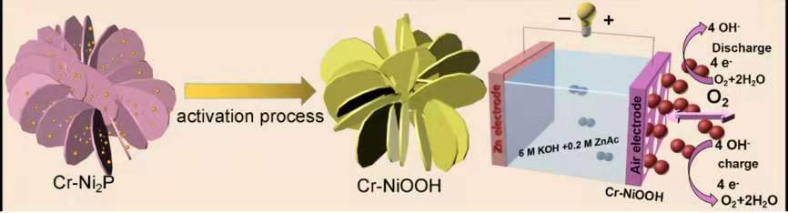 图1. 过渡金属磷化物原位结构相变及锌空气电池示意图。图片来源:Science Bulletin.