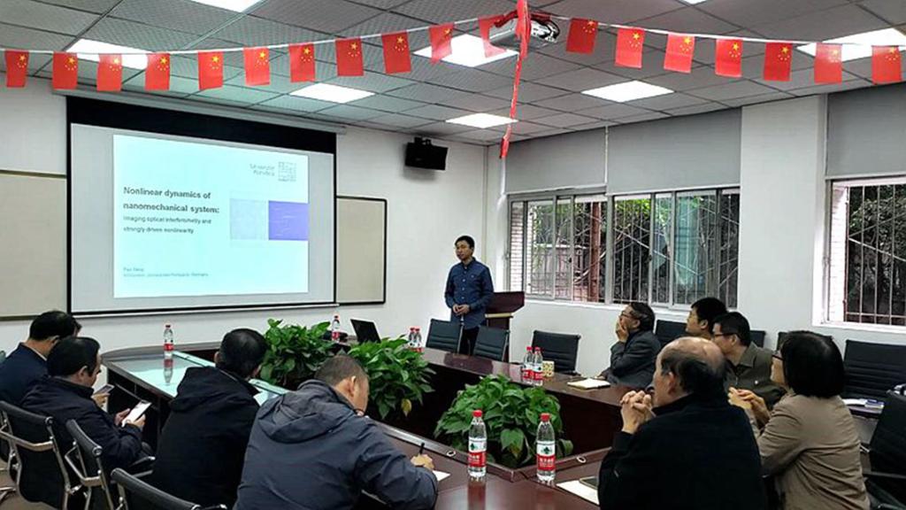 接下来,与会青年学者分别就其研究的前沿领域和热点问题作主题报告。德国康斯坦茨大学杨帆博士介绍了纳米机械系统的非线性动力学——光干涉成像和强烈激发的非线性相关问题;法国国家科学研究中心龚志雄博士就实现粒子操控的声镊技术作了汇报,通过设计和优化声源,在流体介质中辐射出适宜进行微小粒子超控的声漩涡场,进而设计出用于粒子装配的同步声镊;北京航空航天大学王海潮博士围绕航空发动机涡轮叶片冷却问题报告了最新研究进展;南京理工大学周胜兵博士的报告围绕旋转爆震燃烧的新型动力技术作了详细介绍;北京航空航天大学郭方亮博士汇报了多尺度热-力学性能建模分析、湿热老化演变机理以及低膨胀结构优化设计等研究工作;丝袜色情片 即将出站的师资博士后刘锋博士和付涛博士就在站期间研究相关情况作了汇报和分享。各位青年学者与参会教师热烈交流讨论,现场气氛十分活跃。