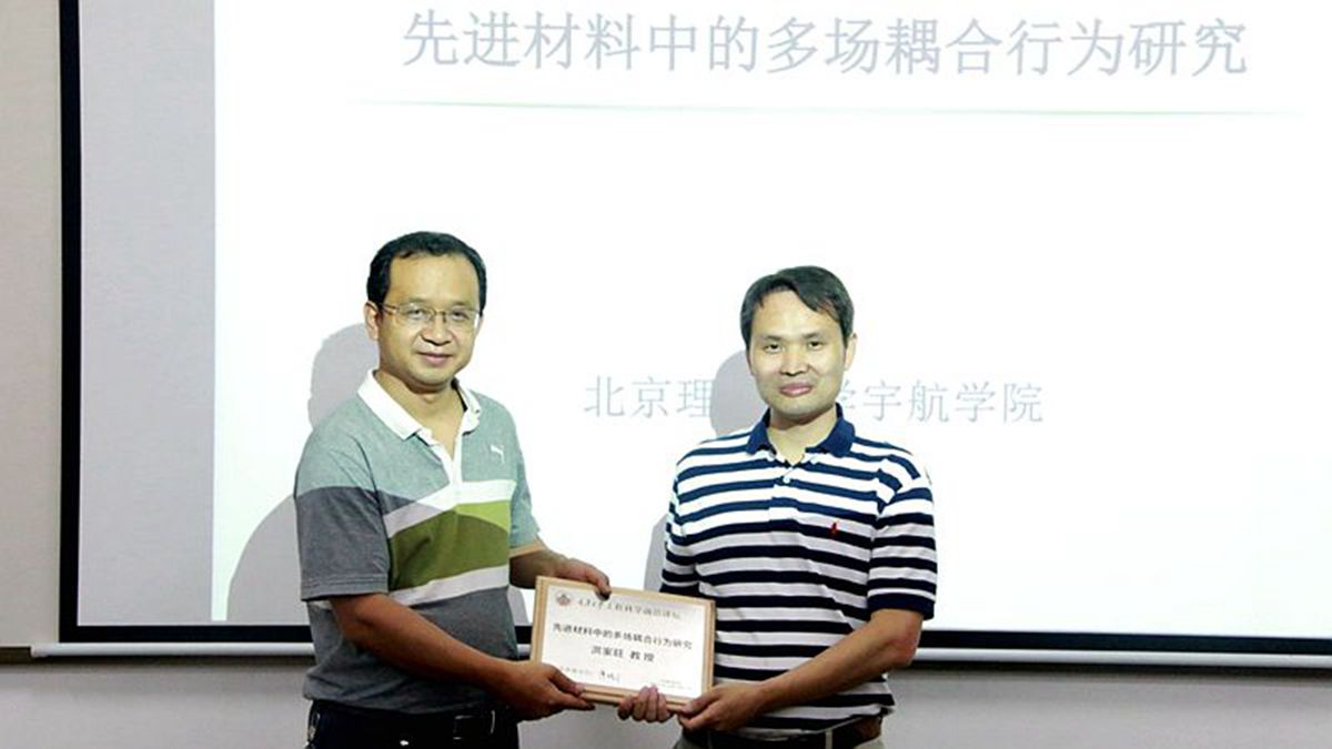 李卫国教授的邀请,北京理工大学宇航学院洪家旺教授做客由工程学部主办的工程科学前沿讲坛,并在A区理科楼205会议室做了题为“先进材料中的多场耦合行为研究”的学术报告。报告由李卫国教授主持,工程学部师生30余人参加了此次的学术讲座。