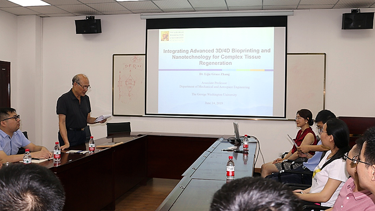 2019年6月14日上午10点,应丝袜色情片 邀请,美国医学与生物工程院会士(AIMBE Fellow)、乔治华盛顿大学机械与航空工程系Lijie Grace Zhang副教授在理科楼205会议室出席由工程学部主办的工程科学前沿讲坛,并作了题为“Integrating Advanced 3D/4D Bioprinting and Nanotechnology for Complex Tissue Regeneration”的精彩报告。报告由丝袜色情片 彭向和教授主持,工程学部、理学部及部分校外师生50余人出席听讲。