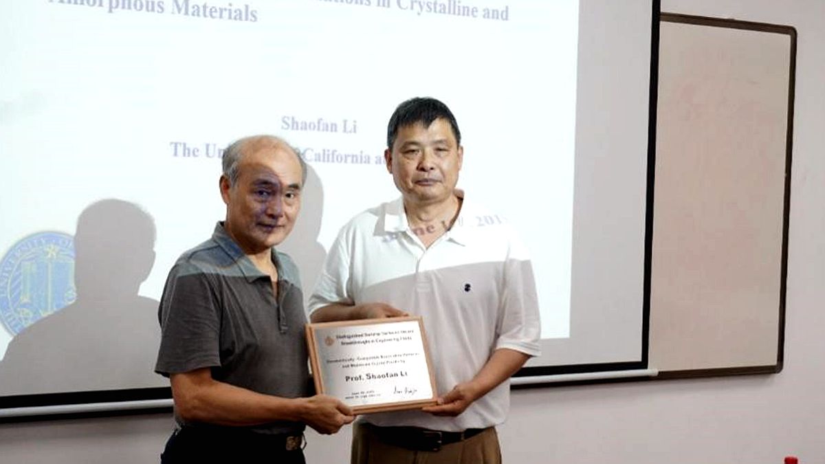 彭向和教授首先介绍了李少凡教授的研究简历。李少凡教授于1997年在美国西北大学机械工程系获得博士学位;1997-2000年在美国西北大学从事博士后研究工作;2000年起,在加州大学伯克利分校任教,并于2010年受聘为该校终身教授。李少凡教授是世界计算力学知名学者,研究领域广泛,包括:无网格方法、计算软物质力学、计算生物力学、材料力学多尺度模拟等。截至目前,累计发表SCI论文150余篇,Google学术累计引用次数8100余次,H-index=43,出版书章8部。研究成果先后获得理查德-牛顿研究突破奖(2008)、美国计算力学学会Fellow奖(2013)、世界华人计算力学学会计算力学奖(2013)、世界计算力学学会Fellow奖(2017)等。同时,他还担任CMES、Acta Mech、Journal of Micromechanics and Molecular Physics等多个力学学术期刊的编委。