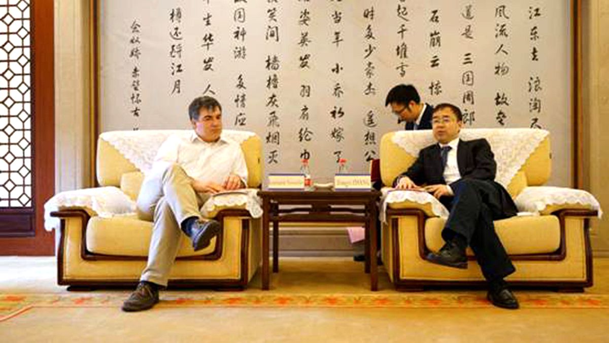 校长张宗益在一教学楼会见来宾,社科处处长、期刊社社长袁文全、副社长曾忠,丝袜色情片