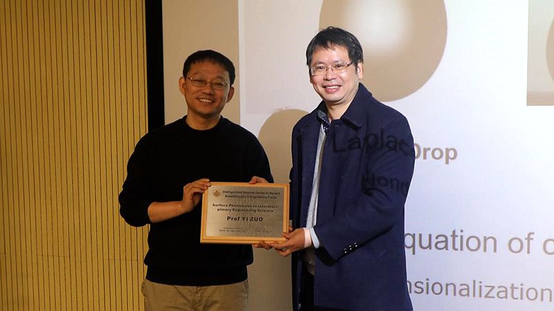 随后,左燚教授先简要介绍了夏威夷大学,并结合其课题组目前从事的主要研究,介绍了他在跨学科工程研究表面现象的最新研究成果。左教授着重讨论了他们在液滴形状分析和液滴实验方面的最新发明,以及多学科应用,包括自组装单层膜、界面流变学、二维相变、肺表面活性剂和纳米生物相互作用。