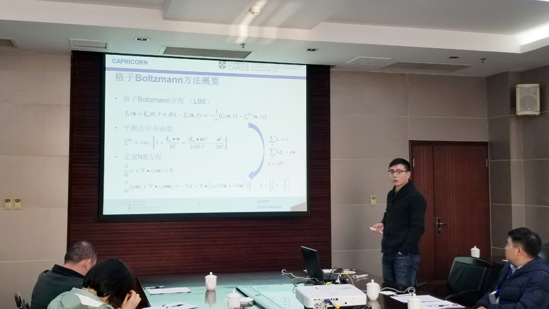 新加坡南阳理工大学博士后张良奇博士的报告题目是《格子Boltzmann方法基础理论研究及其在不可压缩流动中的应用》。据他介绍,基于常规格子模型 (D2Q9模型) 的格子Boltzmann方法可以被看作为传统计算流体力学 (CFD) 方法的一种有效替代方法,并且已经在多孔介质流动,气液和气固多相流动,小尺度流动等复杂流动系统中已经取得了广泛应用。张博士详细阐释了其在格子Boltzmann方法建模原理,格子Boltzmann方法与传统有限差分法之间的相关性以及格子Boltzmann方法的曲面边界处理格式三个方面的研究工作,让大家对这样一种特殊的计算流体力学数值方法有了更清晰的认识。