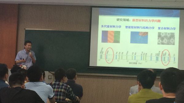 学术报告中,曲教授首先介绍他自己的研究领域,包括多尺度材料力学、智能软材料与结构力学和复合材料力学等。曲教授指出:智能软材料在工程领域有非常广泛的应用空间,如:航天军事领域、软体机器人和软体抓手的开发等,并强调仿生软体机器人是机器人研究的前沿方向。随后,曲教授详细地介绍了他们对于智能软材料与柔性结构的研究工作,包括智能软材料的驱动原理、结构的发展趋势与应用、在研究与应用过程中遇到了的科学问题等。同时,曲教授还详细介绍了他们对于水凝胶的研究工作,并探讨了双网络水凝胶的强韧性能对其在组织工程、药物输送、智能驱动器等领域的影响。