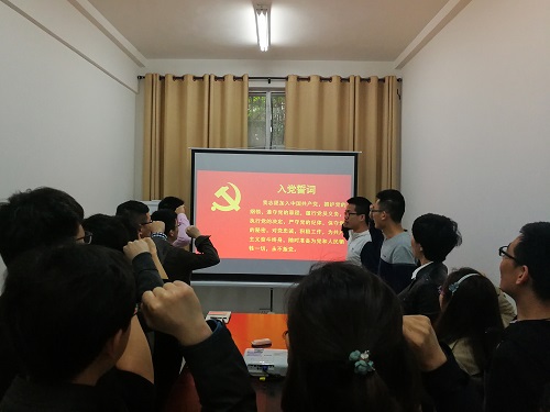 根据支部党员提议,经支委讨论,该支部决定在每月底的组织生活会上,为入党日期在当月的同志集体过“生日”。通过重温入党那一天,提醒党员不忘初心,坚定信仰。2013年4月,张琨同志成为一名预备党员,在这次微课上,他和其他党员一起,庄严的举起右手,在支部书记的领誓下,重温入党誓词,程乐书记随后为其佩戴党徽胸章。张琨同志说,他永远忘不了成为预备党员的那一天,也永远不会忘记今天,今后,他会更加严格要求自己,向榜样看齐。