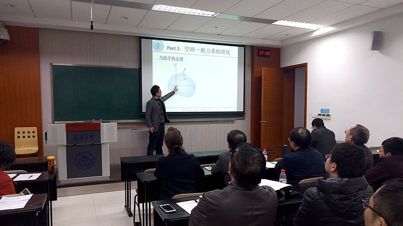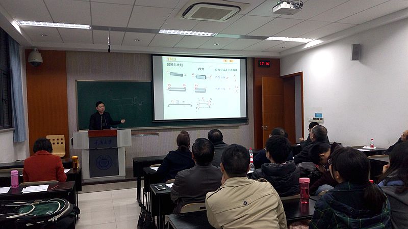 吴剑老师以“弯曲应力”的部分教学内容进行演示,通过启发式教学模式,对内容进行了详细的讲解。章俊老师讲授的内容是《空间任意力系》,从力的平移定理等方面进行讲解,过程流畅,内容丰富。刘瑶璐老师则以材料力学中的“材料拉伸时的力学性能”为主题,结合实例、娓娓道来。姚建尧老师讲解的课程为《飞行器结构力学》,运用PPT和板书相结合的形式,对耦合相关定理进行了阐释。